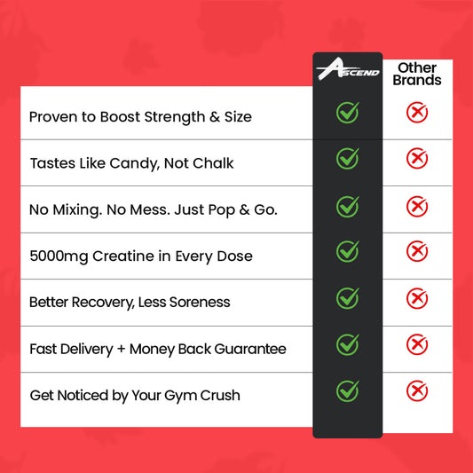 Ascend Creatine Gummies offer a delicious, convenient, and mess-free alternative to powder, no mixing, no bloating, just precise dosing on the go. Enjoy the same muscle-boosting benefits with better taste and easy digestion!